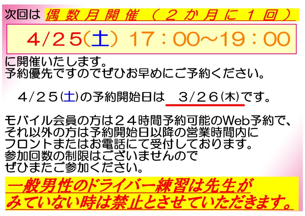 お知らせ 【4月】白石将章プロ無料レッスンのお知らせ 2026年2月28日 by オカモゴルフ事務局 オカモゴルフ事務局 オカモゴルフは千葉県四街道市のゴルフ練習場です。 周りには千葉市民ゴルフ場、四街道ゴルフ倶楽部、京葉カントリー倶楽部等のゴルフ場が多くある好立地です。アプローチやバンカーの練習もできますので、ラウンド前後にも是非練習にいらしてください。 お問い合わせは043-237-8097です。